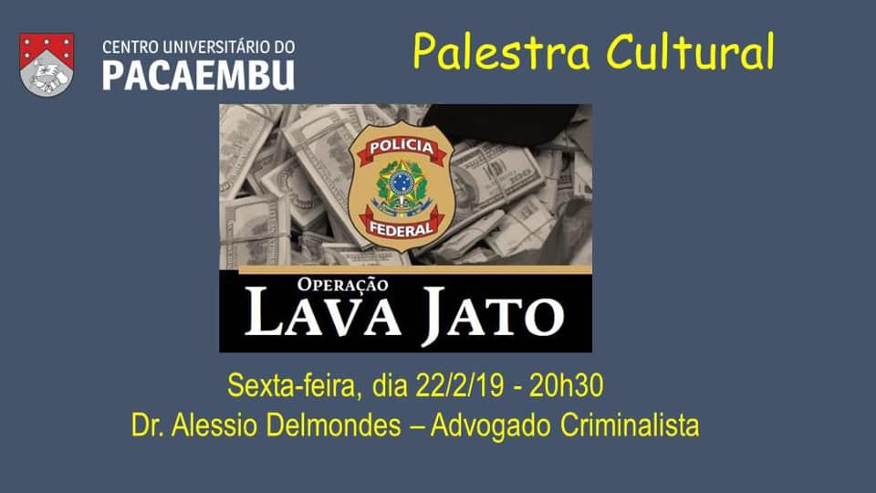Palestra Cultural no Centro Universitário do Pacaembu Publicações Palestra cultural no centro universitário do Pacaembu sobre a Operação Lava Jato.